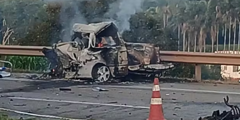 De acordo com o Corpo de Bombeiros Militar de Minas Gerais, a picape retornava de Ubatuba (SP) com destino a Contagem (MG) quando o motorista perdeu o controle da direção, atravessou a pista e colidiu com uma das carretas. Em seguida, o veículo foi arremessado contra a lateral de outro caminhão, atingiu a defensa metálica do canteiro lateral, parou e pegou fogo.