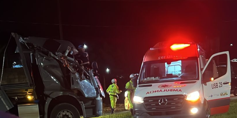 Um motorista ficou gravemente ferido na noite desta terça-feira (16) após um acidente envolvendo um caminhão carregado com vidros na BR-459, no km 130, em Santa Rita do Sapucaí, no Sul de Minas. O caso foi registrado por volta das 21h40, em um trecho urbano da rodovia, nas proximidades do Trevo da Santa.
