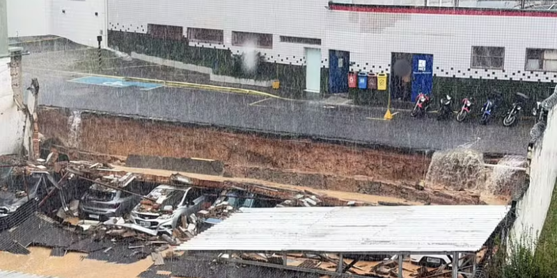 Uma chuva intensa atingiu Itajubá na tarde desta quinta-feira (26) e provocou alagamentos, deslizamentos e o desabamento do muro de um estacionamento ao lado do Hospital de Clínicas de Itajubá. Estruturas e veículos foram atingidos, e uma mulher que estava próxima ao local escapou sem ferimentos. Segundo o Corpo de Bombeiros, não houve vítimas.